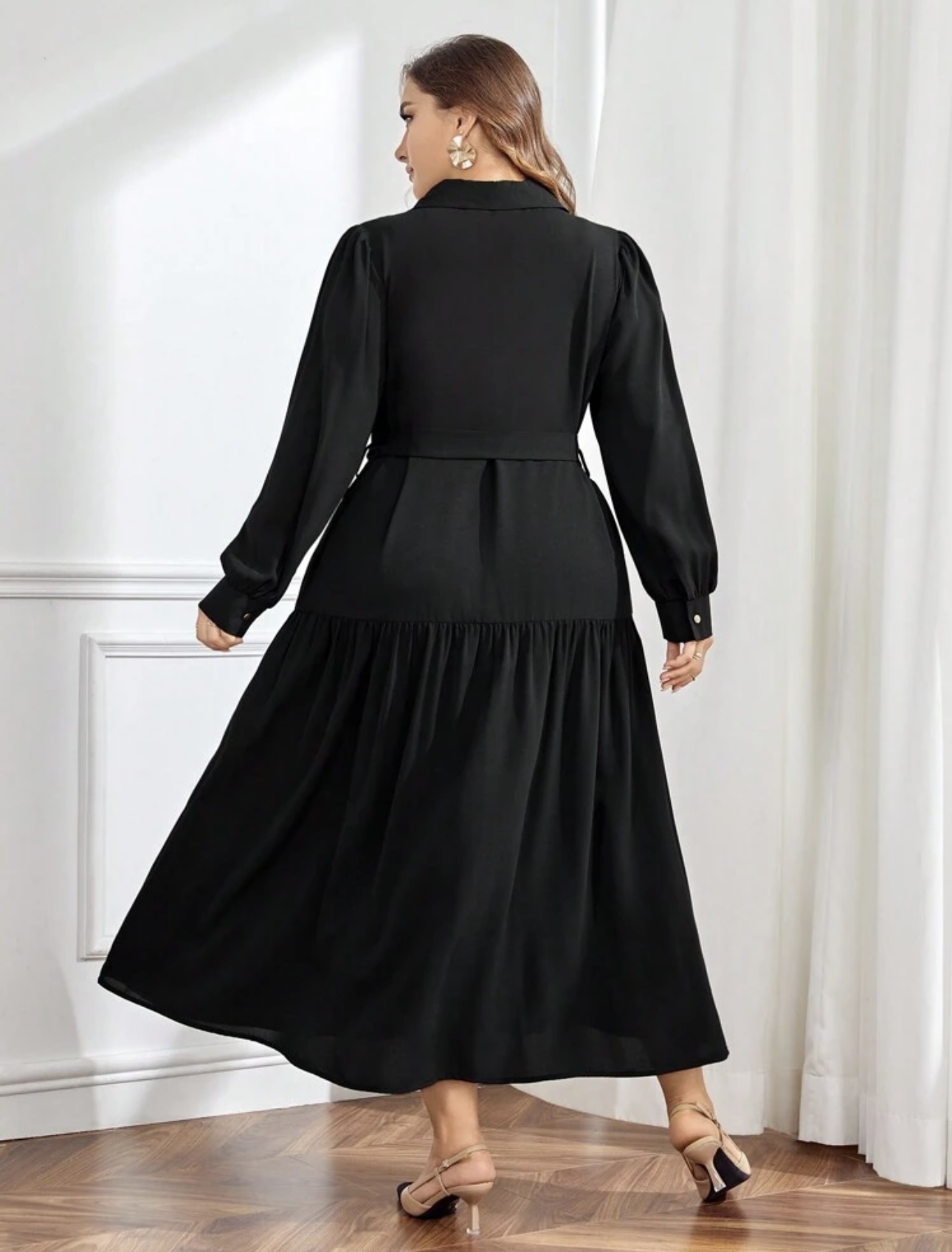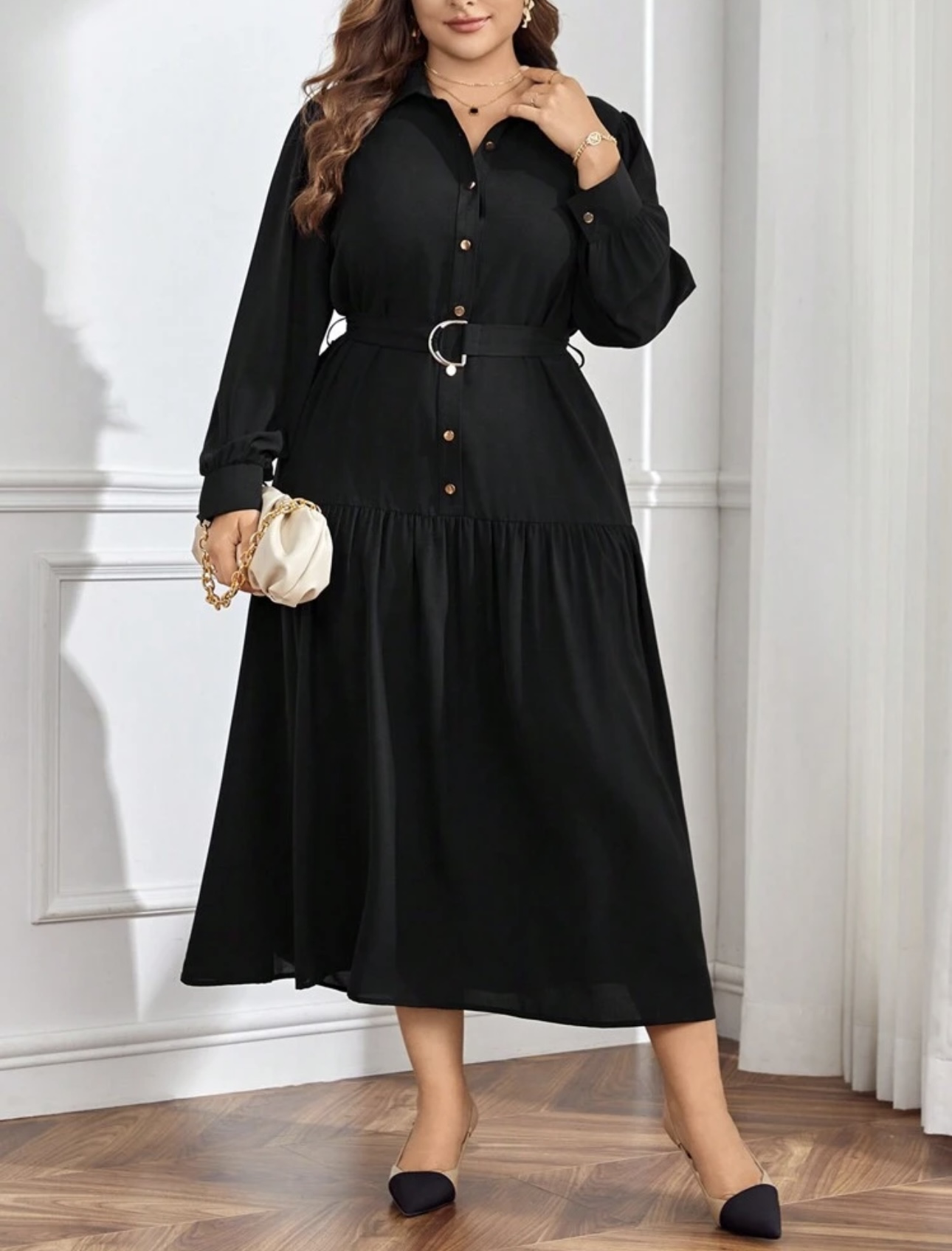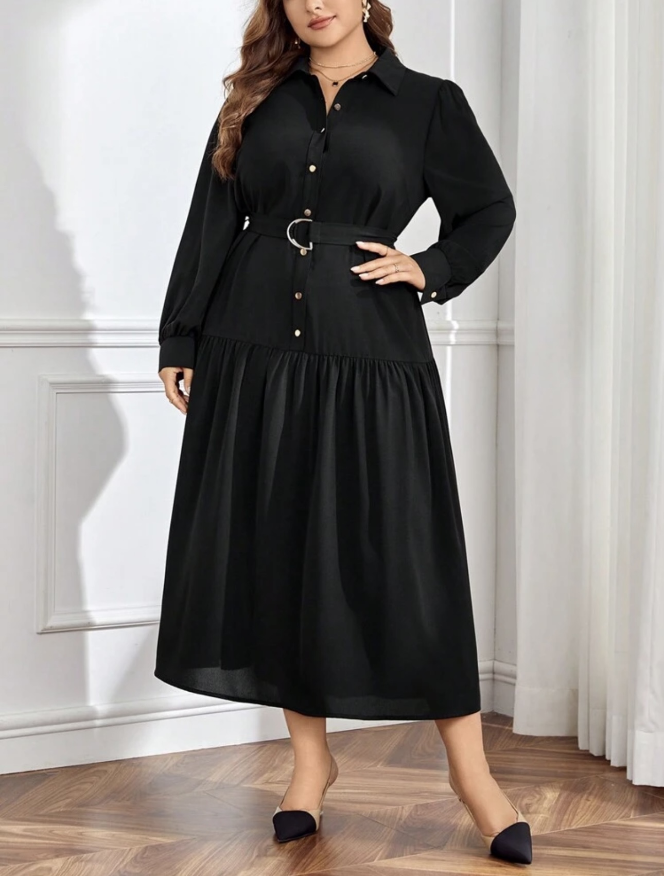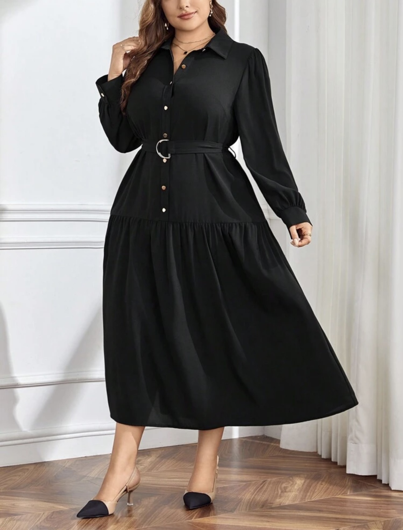 Vestido camisero con botón delantero con cinturón no elasticado