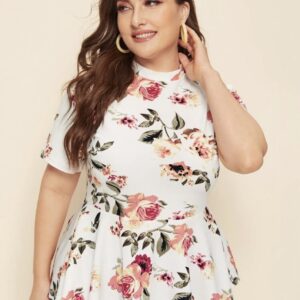 Top peplum con estampado floral de cuello alto